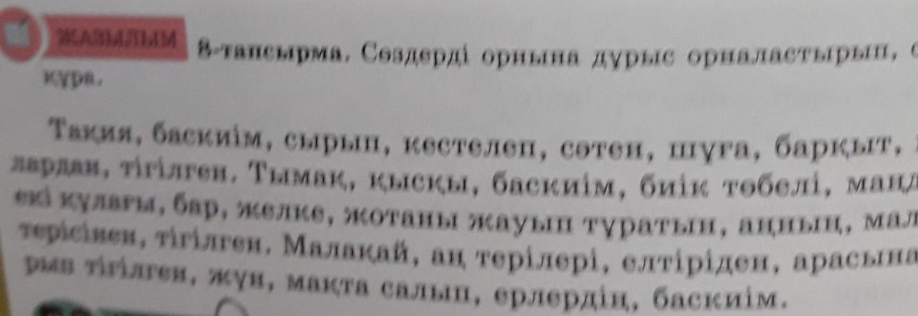 8-тапсырма. Сөздерді орнына дұрыс орналастырып, сөйлем