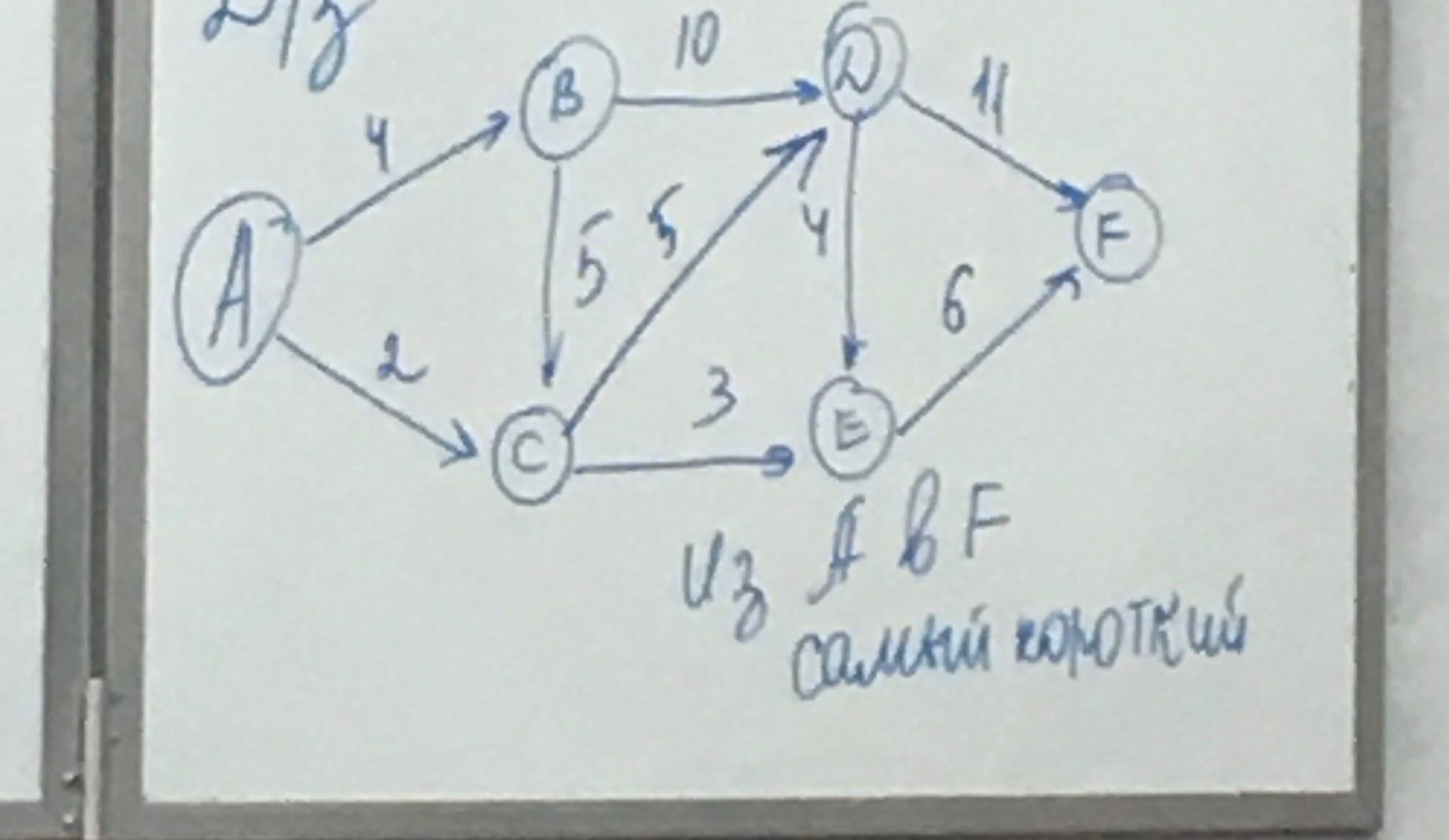 a+c+e+f=2+3+6=11 (Самый короткий путь от A до F)
