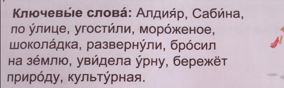 Алдияр и Сабина гуляли в парке они ели шоколадки. Когда они съели шоколадки они захотели поесть мороженое. Они пошли в магазин и купили мороженое. Они сели на лавочку и стали есть. Когда они съели они думали куда выкинуть мусор. Алдияр сказа: а давай просто так выкинем. Сабина сказала давай. Как они выкинули мусор к ним подошел дворник и сказал Ребята почему вы разбрасываете мусор? Разве вы не знаете что надо беречь.Если вы выкинули мусор не в урну а выбрасили просто так то природа начнёт погибать. Потому что мусор портит всё. Если не беречь природу она погибнет. После этого ребята понили что мусор надо выбрасывать в урну.После этого ребята всегда выбрасывают мусор в урну.Поэтому на беречь природу!