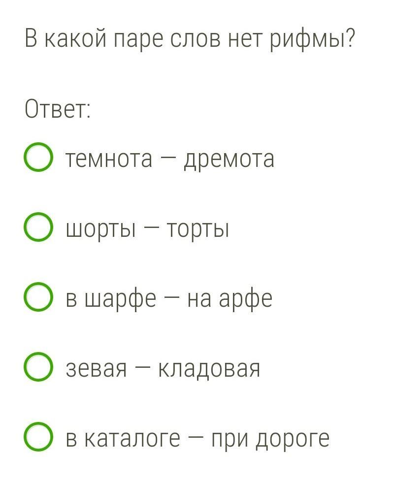 в какой паре слов нет рифмы ? ПОМОГИТЕ ПОЖАЛУЙСТА , заранее благодарю
