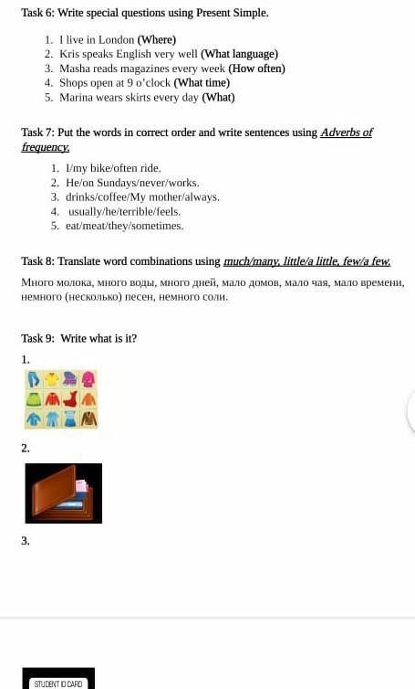 Task 7: Put the words in correct order and write sentences using Adverbs of