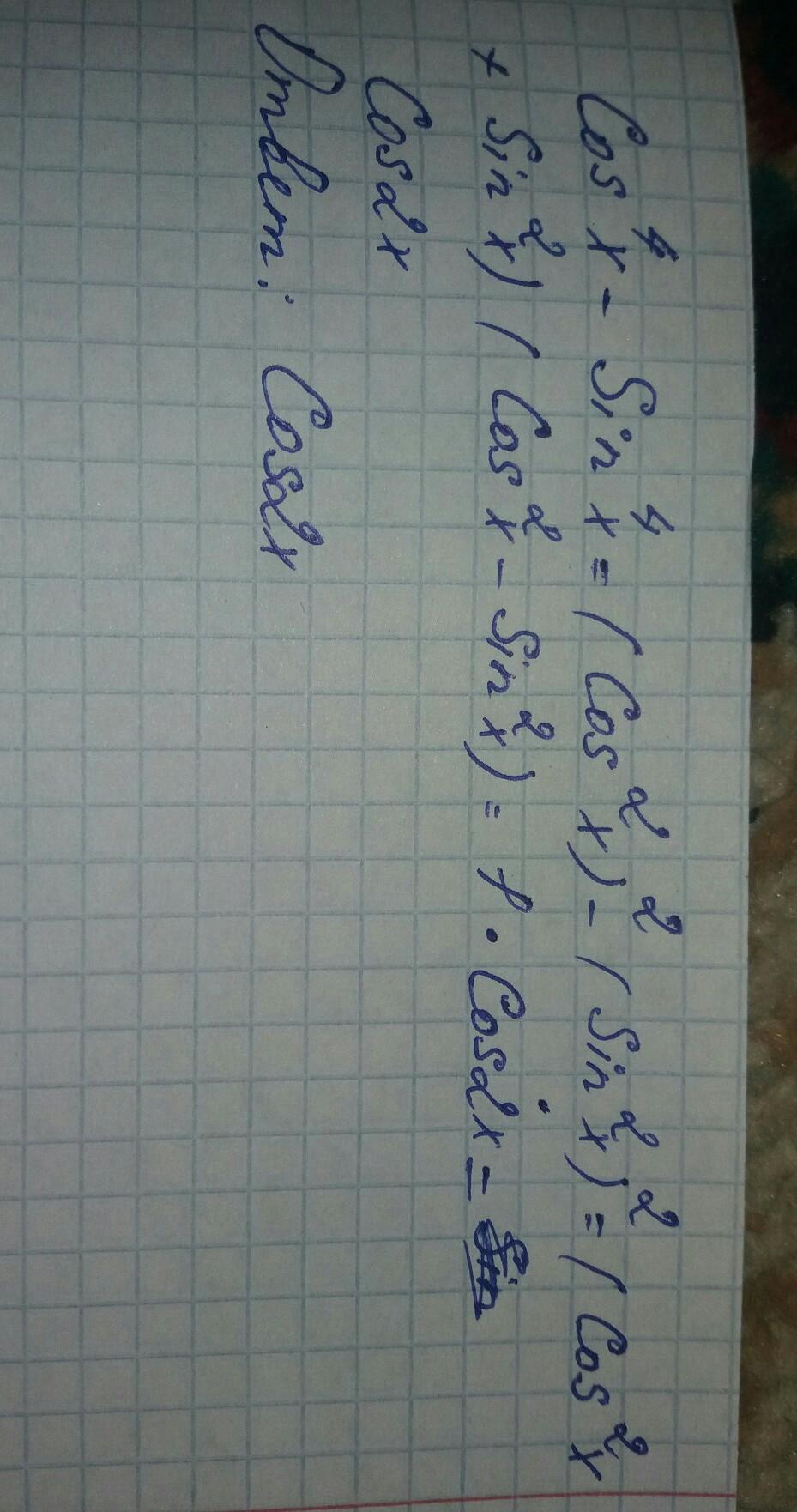 Cos⁴x - Sin⁴x = (Cos²x)² - (Sin²x)² = (Cos²x + Sin²x)(Cos²x - Sin²x) =