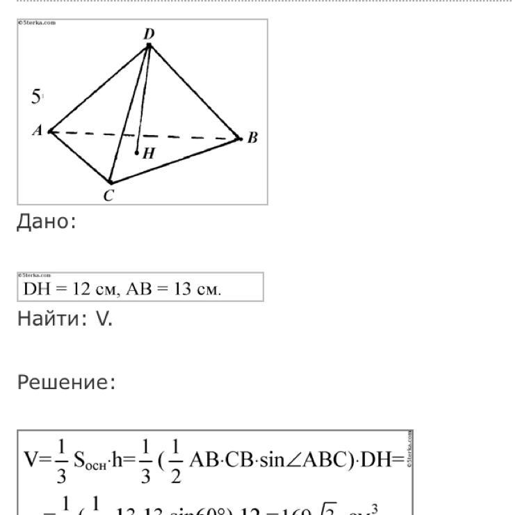 треугольной пирамиды, сторона основания которой равна 6 см, а высота 12 см