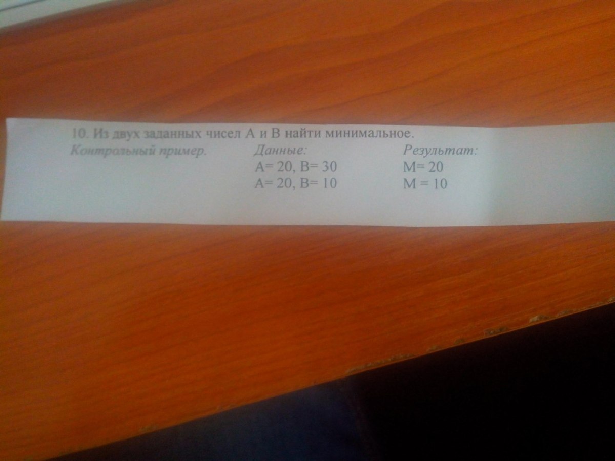 Из двух заданных чисел A и B найти минимальное.На языке Pascal пожалуйста)