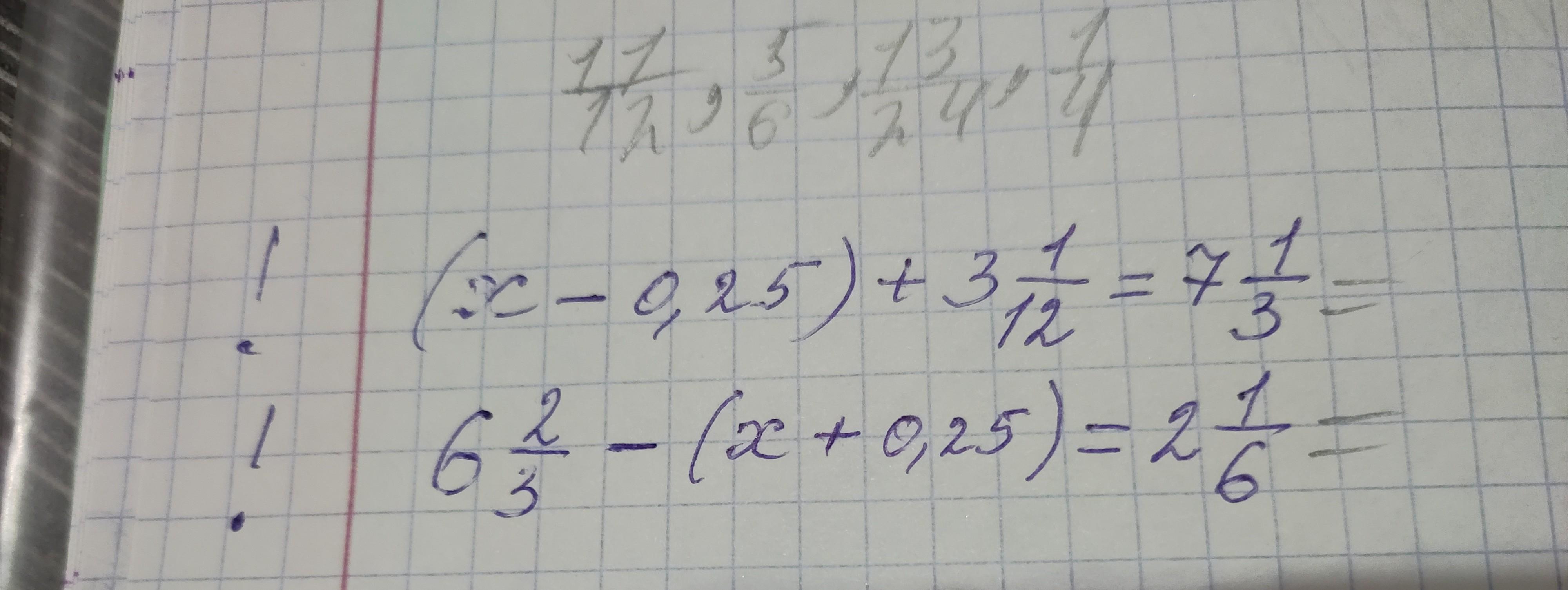 1) (х - 0,25) + 3 1/12 = 7 1/3