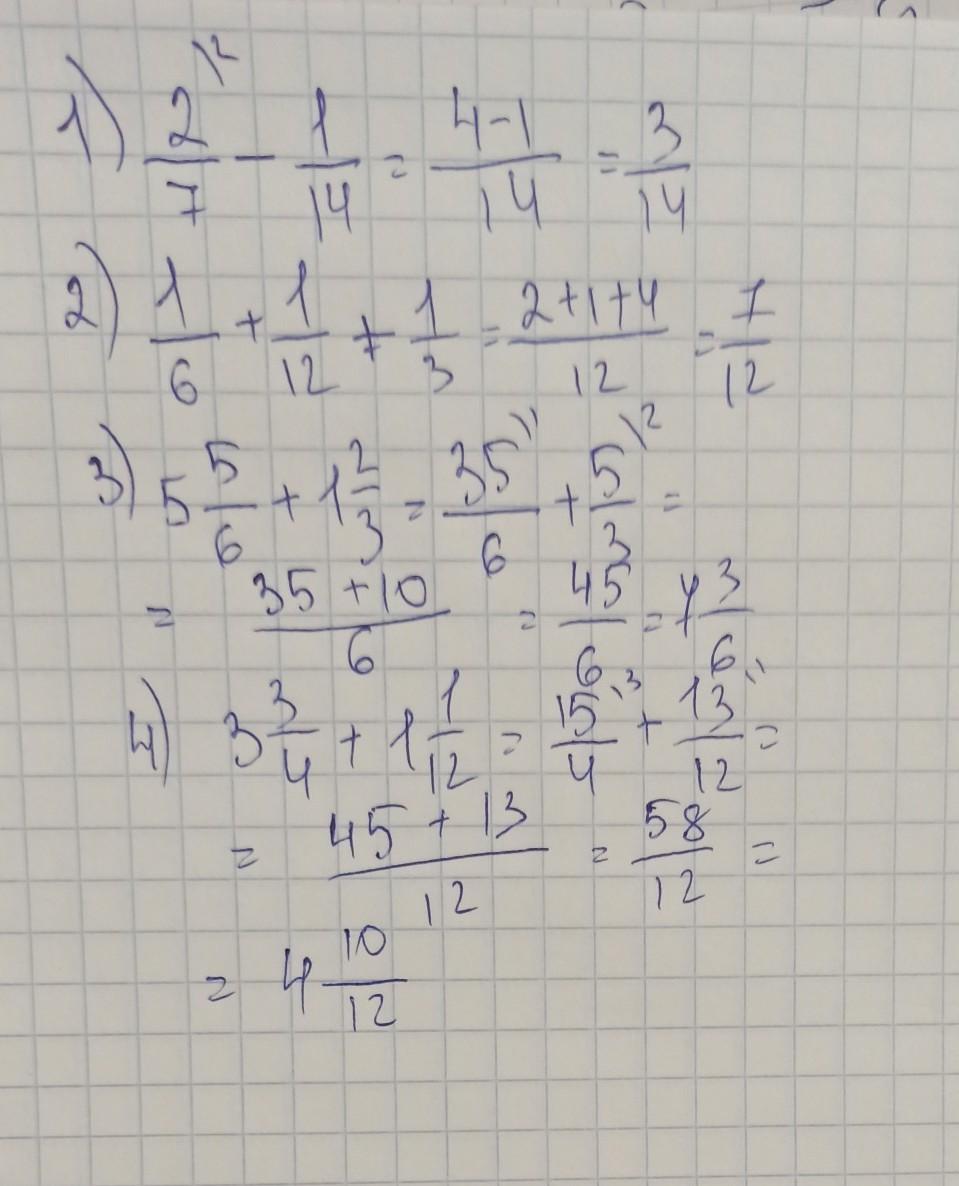 4) 3(целых) 3/4 + 1(целых) 1/12=