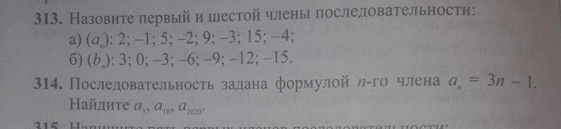 313. а) а1=2; а6= -3.