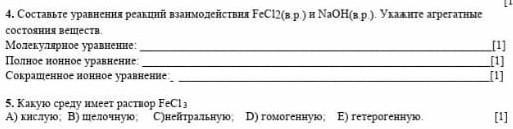 Составьте уравнения реакций взаимодействия FeCl2(в.р.) и NaOH(в.р.). Укажите агрегатные состояния веществ