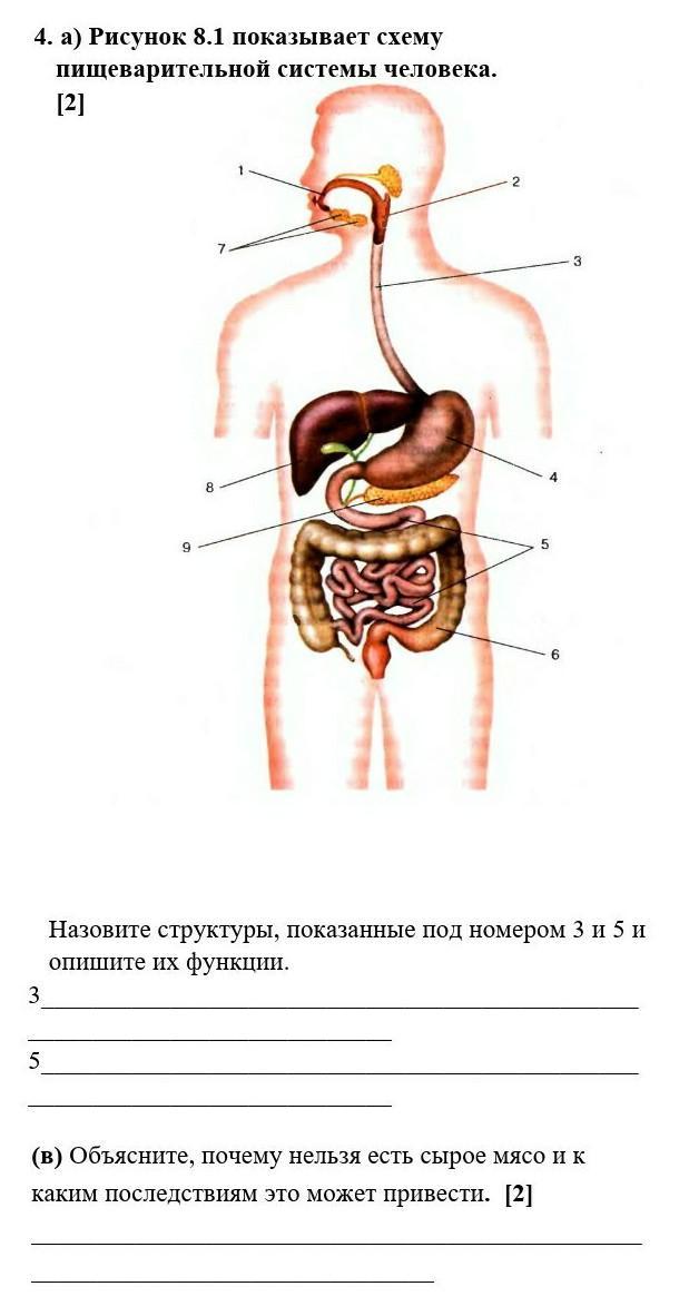 (в) Объясните, почему нельзя есть сырое мясо и к каким последствиям это может привести. [2]
