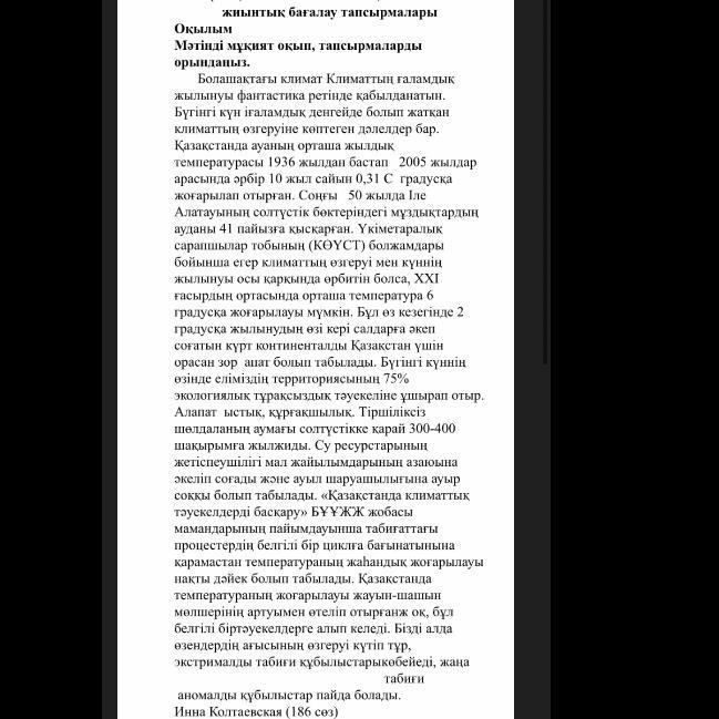 Мәтінде климат өзгеруінің қандай себептері көрсетілген? ______________