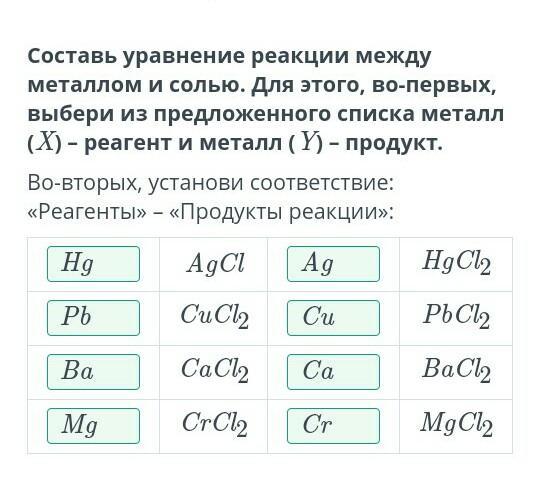 Во-вторых, установи соответствие: «Реагенты» – «Продукты реакции»: