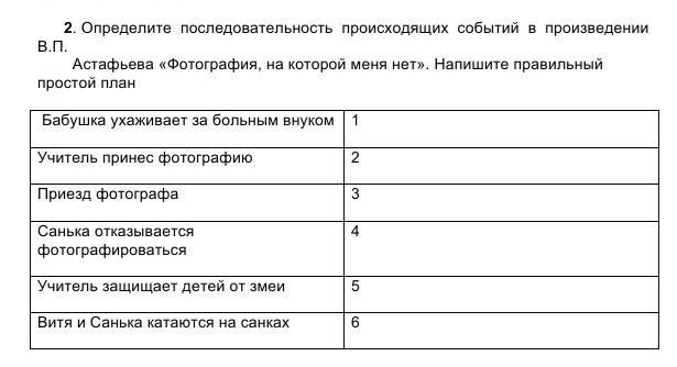 Астафьева «Фотография, на которой меня нет». Напишите правильный простой план