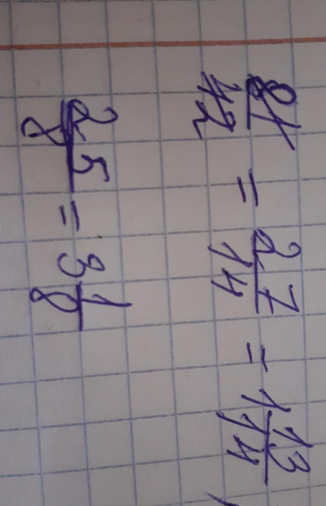 в первом примере сокращается на три и из 81=27 а из 42 =14 и это не правильная дробь переводим и ответ получается