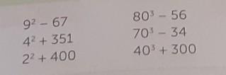 67-9=58 , 351+4=355, 400+2=402, 80-56= 24,70-34=36, 40+300=340