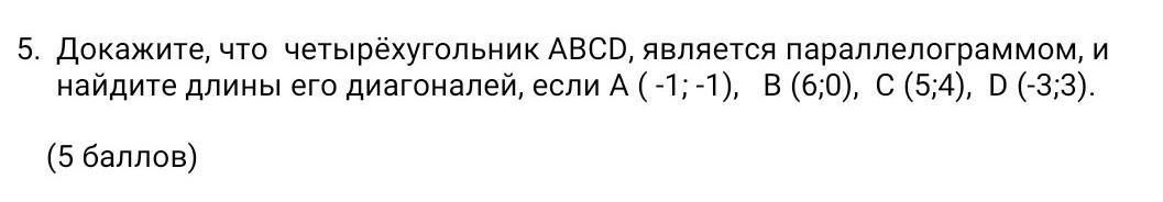 как известно, у параллелограмма противоположные стороны равны. Поэтому, мы можем попробовать составить два вектора - AB и CD