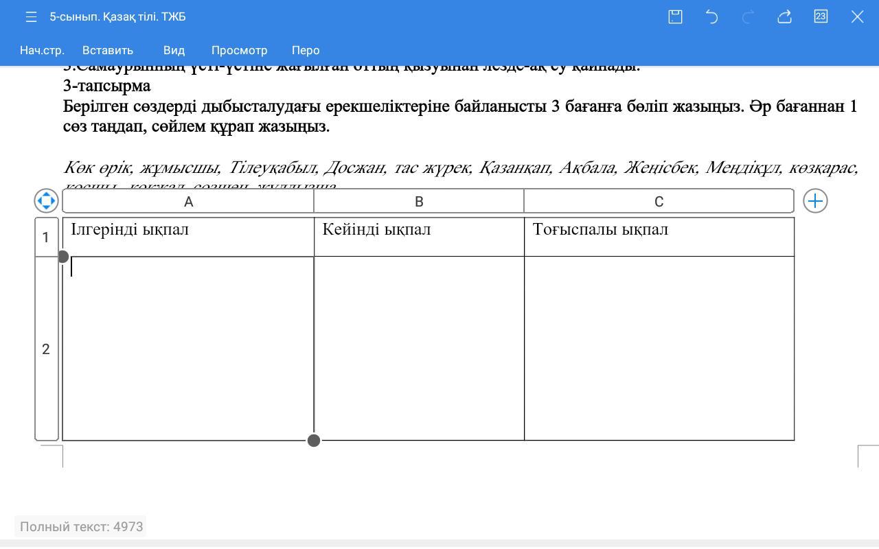 Берілген сөздерді дыбысталудағы ерекшеліктеріне байланысты 3 бағанға бөліп жазыңыз. Әр бағаннан 1 сөз таңдап, сөйлем құрап жазыңыз.