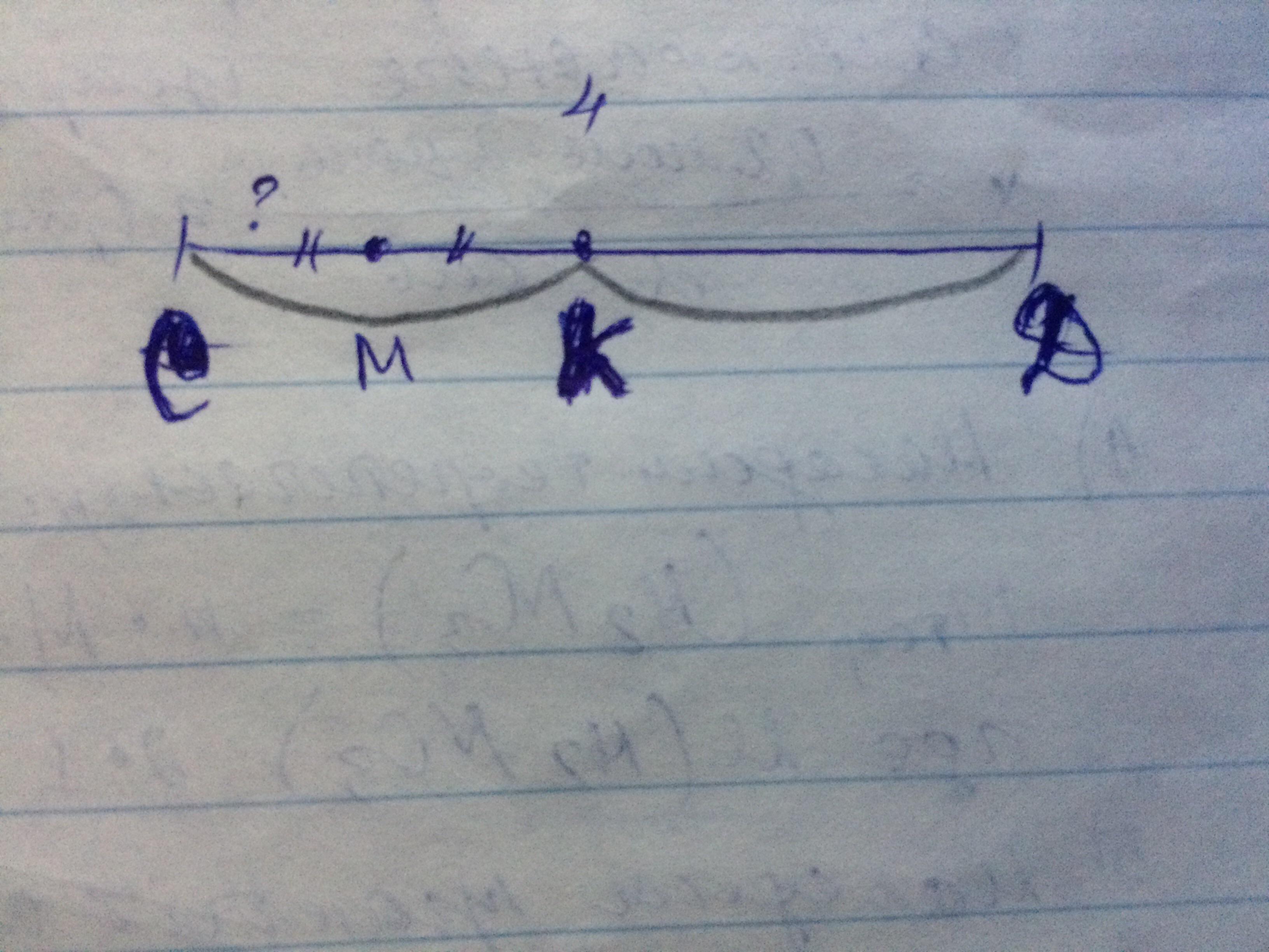 3. Точка К является серединой отрезка CD, равного 4 см, точка M является серединой отрезка СК.