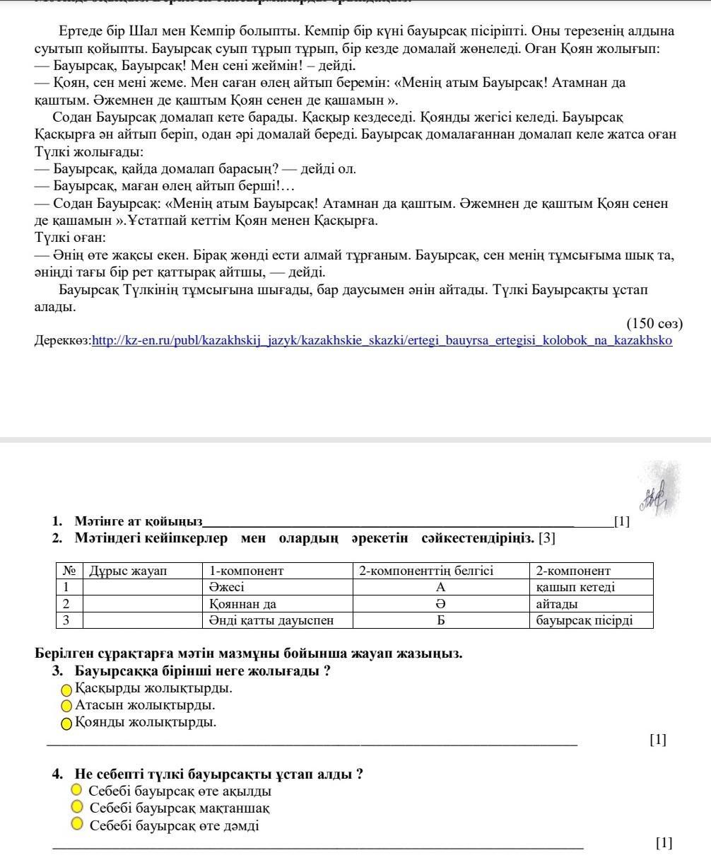 1)Бауырсак.2)Ажеси б,2)кояннан да А,3)анди катты дауыспен айтады.3)бауырсак биринши коянга жолыгады.4)себеби бауырсак оте дамди.