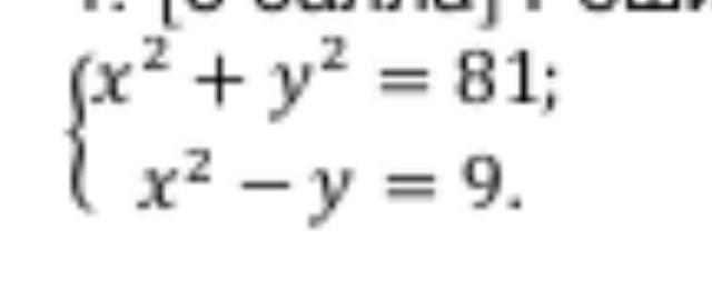 решите систему уравнений {х^2+у^2=81, {х^2-у=9