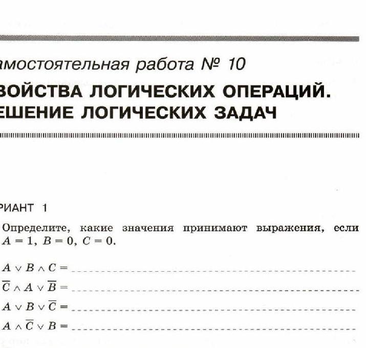 А ∧ ¬С ∨ В = 1 ∧ ¬0 ∨ 0 = 1 ∧ 1 ∨ 0 = 1 ∨ 0 = 1