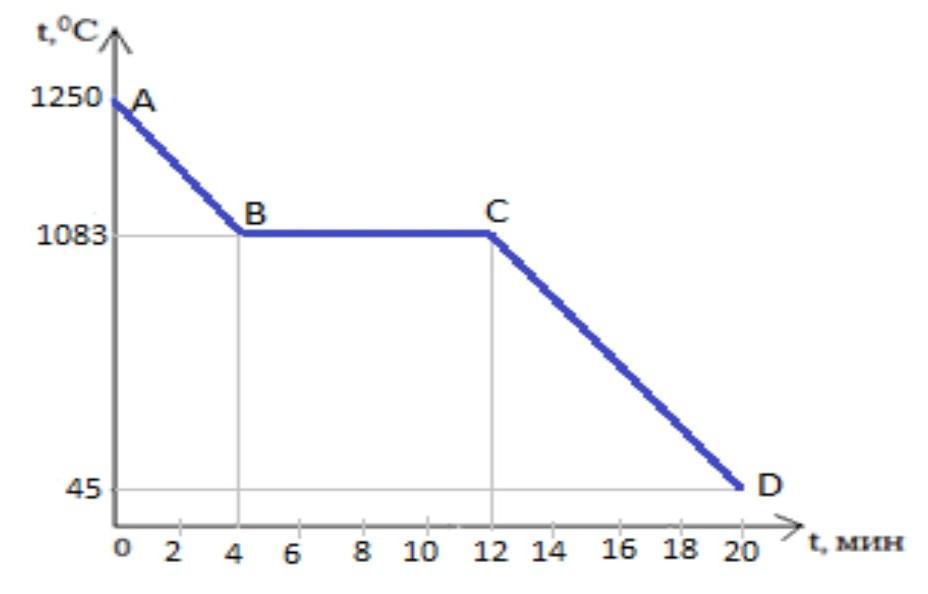 На рисунке представлен график охлаждения и кристаллизации меди.