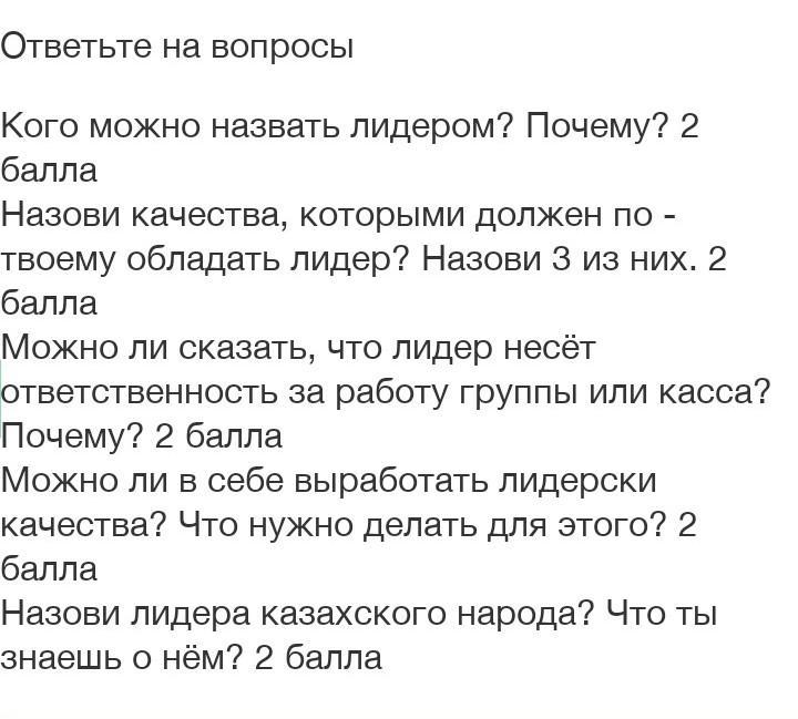 1) Лидер- это человек, который готов взять на себя ответственность в трудную минуту