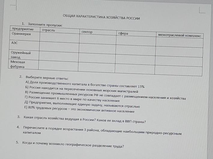 общая характеристика хозяйства России