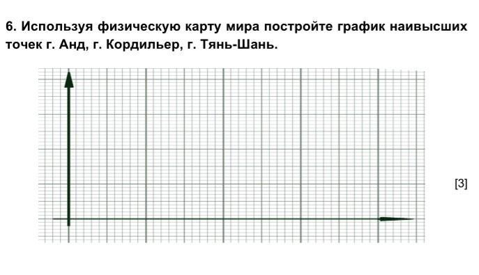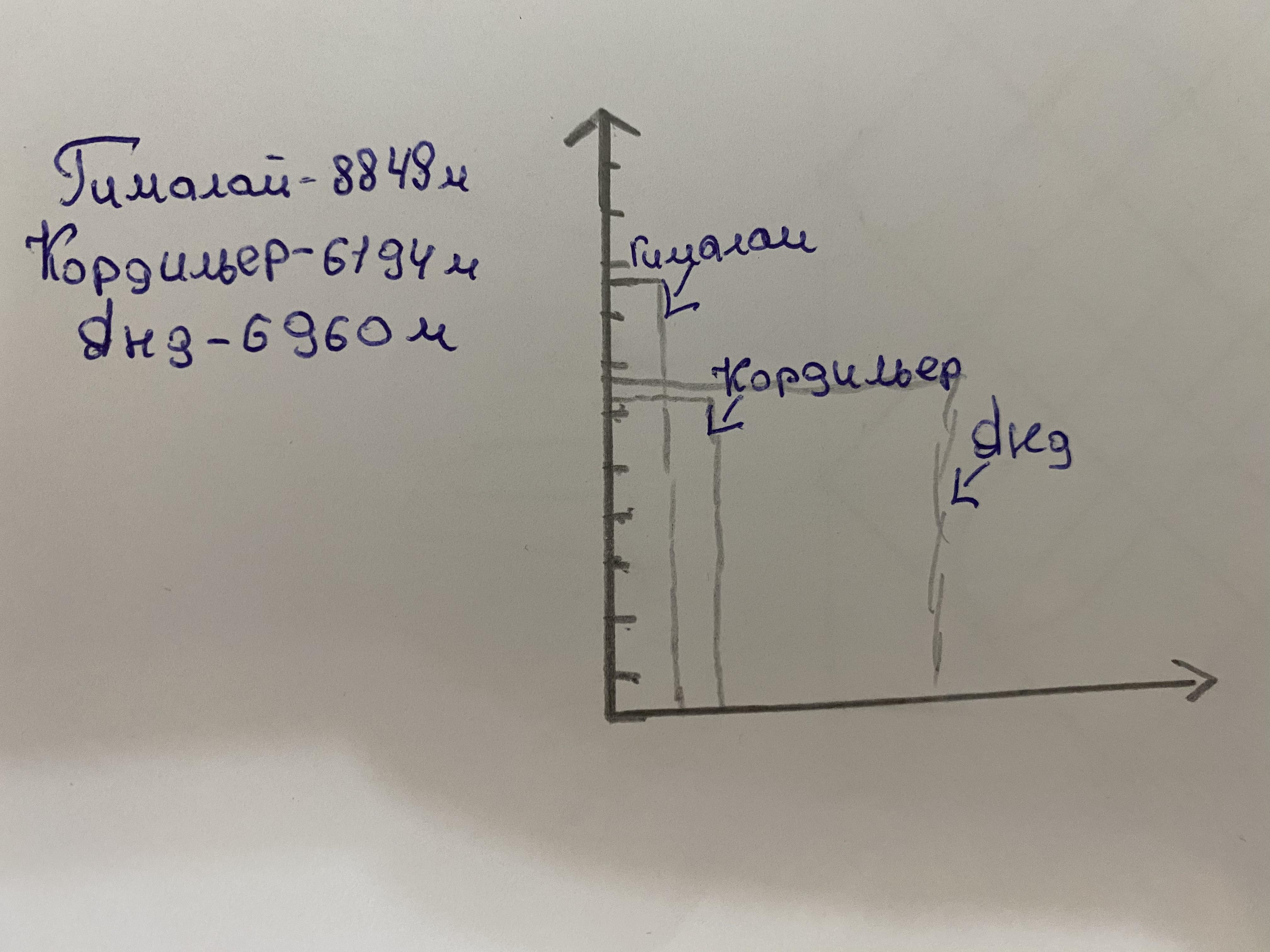 Используя физическую карту мира постройте график наивысших точек г. Анд, г. Кордильер, г. Тянь-Шань.