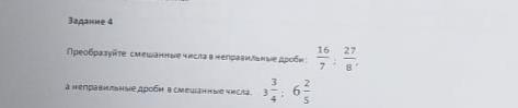Преобразуйте смешанные числа в неправильные дроби: 16/7 ; 27/8