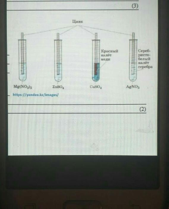 Алибек решил исследовать цинковые пластинки насколько они активны поместив их в раствор разных солей Рассмотри внимательно рисунок Опиши процессы протекающие в каждой пробирке бы объясни химические свойства цинка которые он проявляет в каждой пробирке