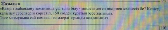 Қазіргі заман талабы бойынша, кез келген адам үштілді білуі тиіс және оны жетік меңгерген жөн.Себебі, үш тілді білген адамға бәрі де оңай көрінеді.Ол жат тілді тез меңгеріп алады.Сол себепті де, үш тілді білу өнер болып табылады.м