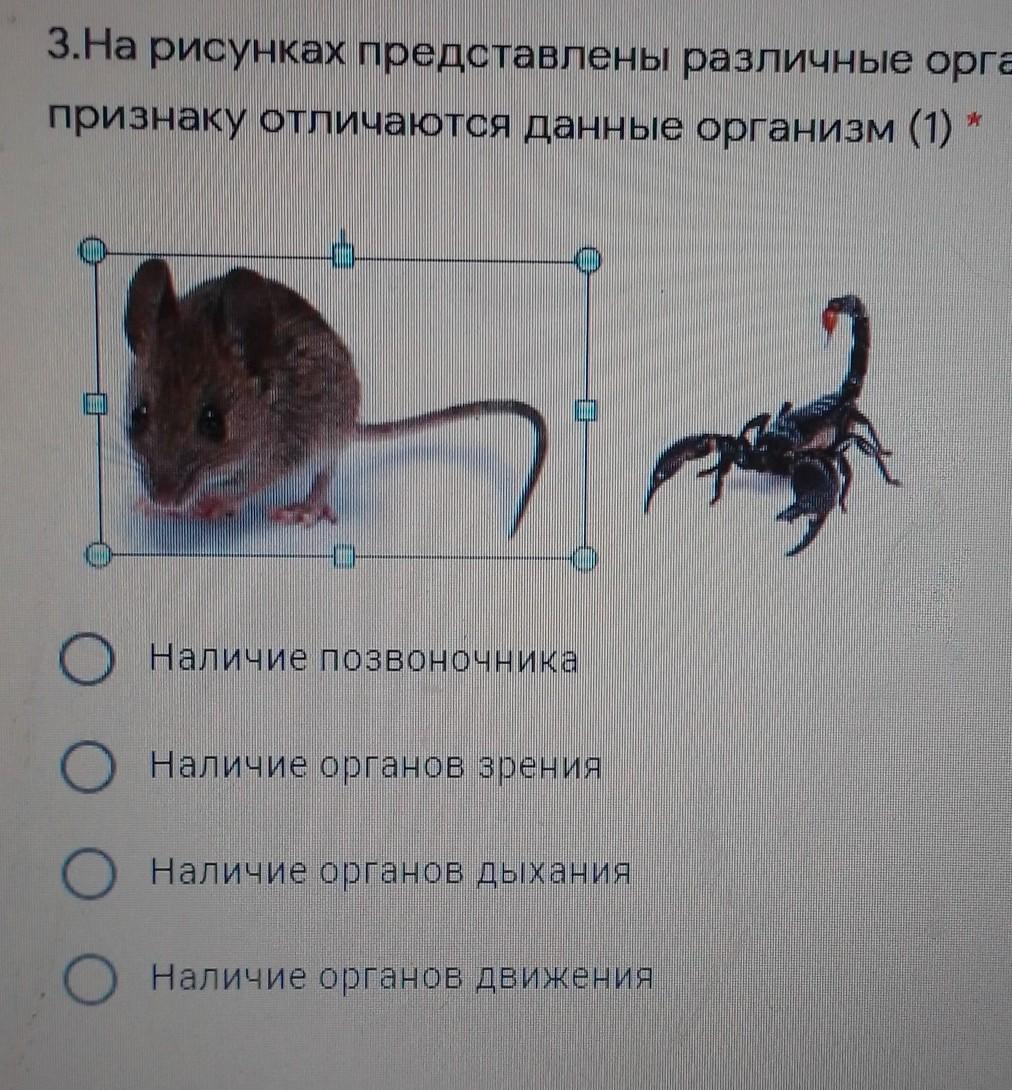 Данные организмы различаются по наличию позвоночника. Мышь - позвоночное, скорпион - беспозвоночное.