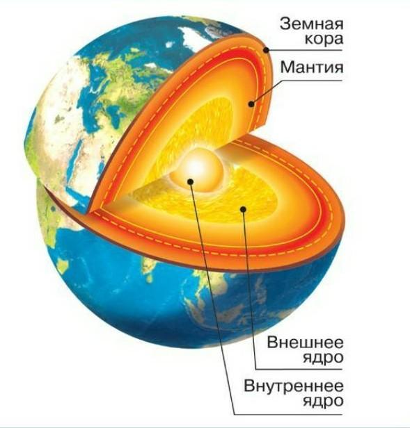 Свойства ядра Земли. Внешняя часть ядра находится на глубине 2900 км. Само же оно имеет радиус 3500 км. Предположительно, состоит ядро из сплава железа и никеля, с примесью различных элементов (серы, кислорода, кремния, хрома, фосфора и других).