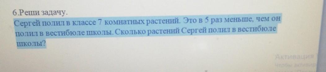 Если в классе он полил 7 растений но при этом это в 5 раз меньше чем в вестибюле. То надо просто 7×5
