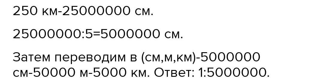 2. Расстояние между двумя городами 250 км, а на карте – 5 см. Найдите масштаб карты.