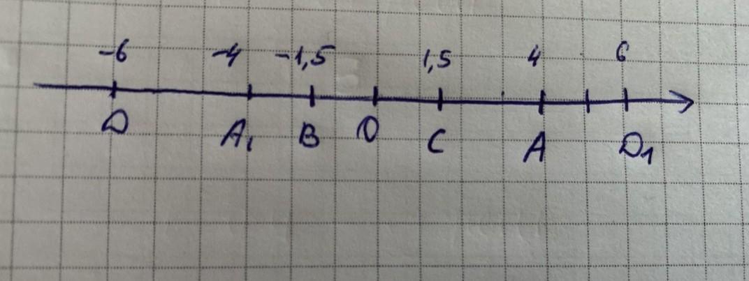 4. а) На координатной прямой отметьте точки А(4), В(-1,5), С(1,5), D(-6).