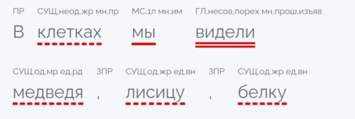 То что красным подчёркнуто-это синтаксический разбор, сверху, что подписано это морфологический
