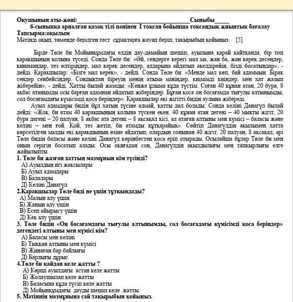 Мәтіннің мазмұнына сай тақырыбын қойыңыз