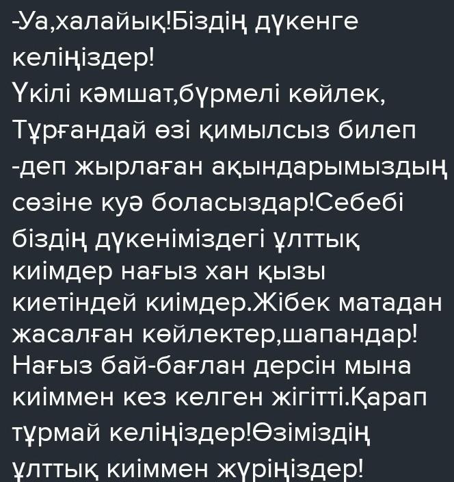 Ээ барлығын бергеліңдер!!! Мында ұлттық киім сатылып жатыр!! Размері кішкентай екен, жирныйларға сыймайды! Скидка 0%!! Тезірек келіңдер!!