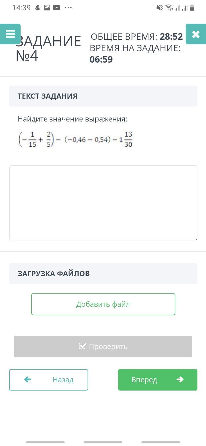 1) -1/15 + 2/5 = -1/15 + 6/15 = 5/15 = 1/3