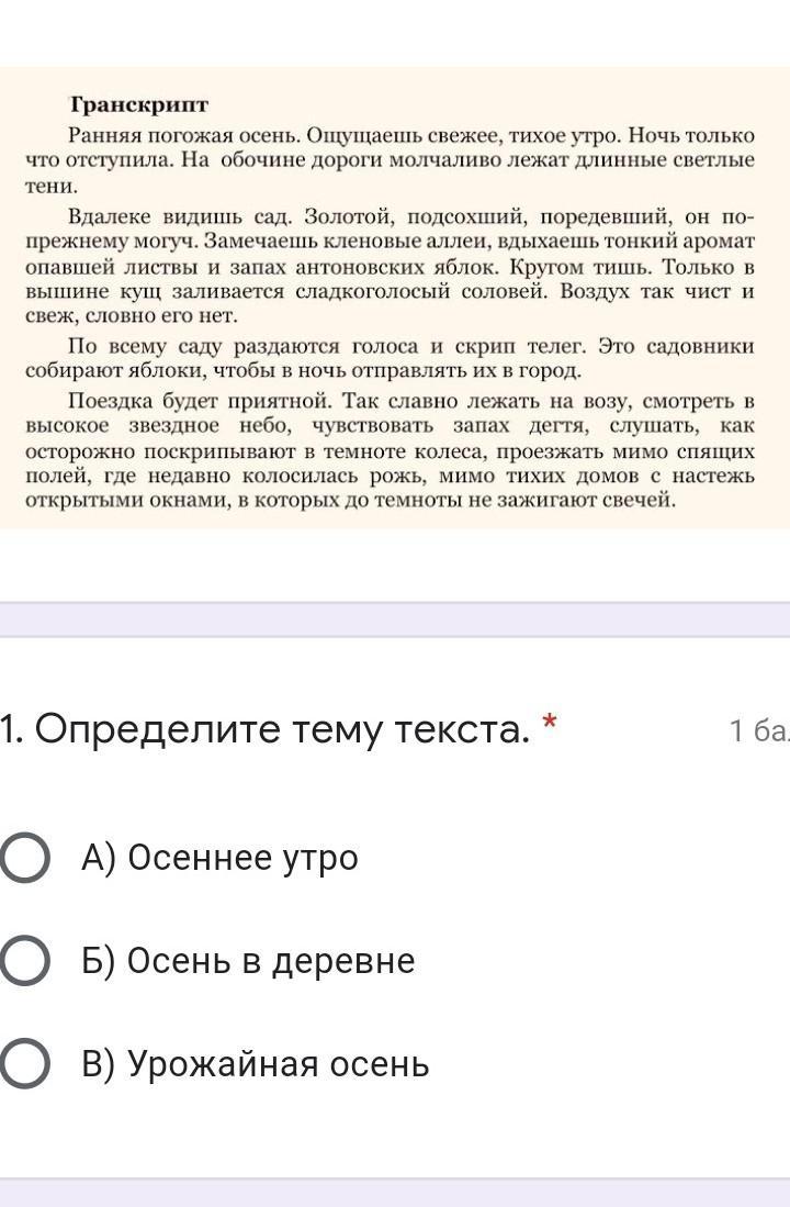 Ответ: осеннее утро