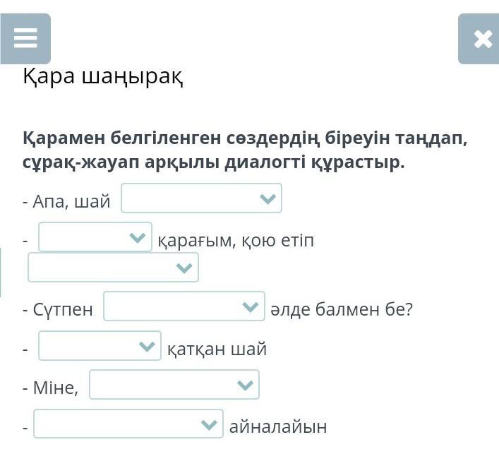 қарамен берілген сөздердің бкреуін таңдап, сұрақ-жауап арқылы дилогті құрастыр