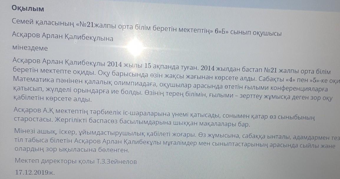 Тапсырма:. Берілген тұжырымдарға сүйеніп, мінездеме жанрына тән 2 (екі) ақпараттарды