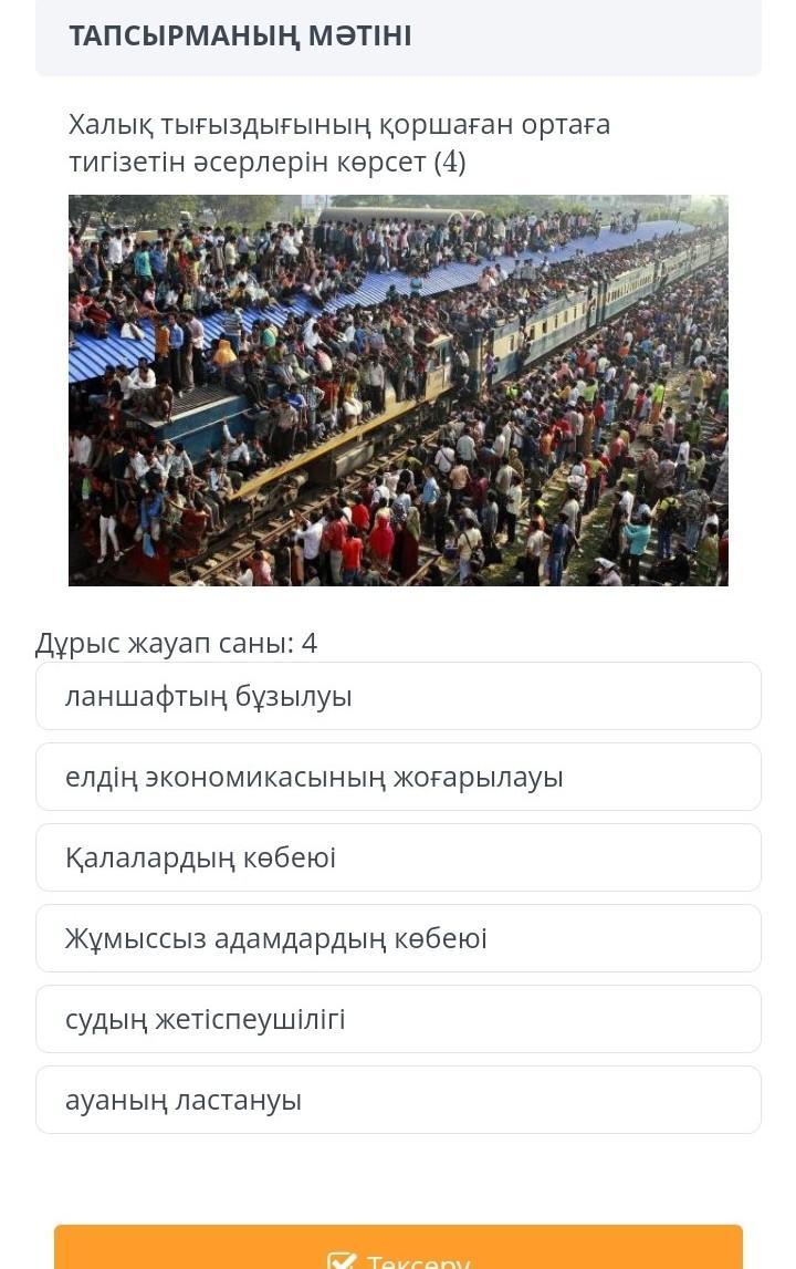 Елдің экономикасының жоғарылауы,Судың жетіспеушілігі,Ауаның ластануы,Ландшафтың бұзылуы