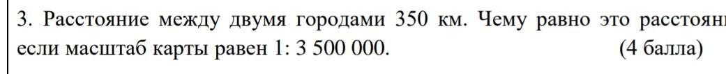 расстояние между двумя городами 350км.Чему равно это расстояние на карте, если масштаб карты равен 1 : 350 000 000