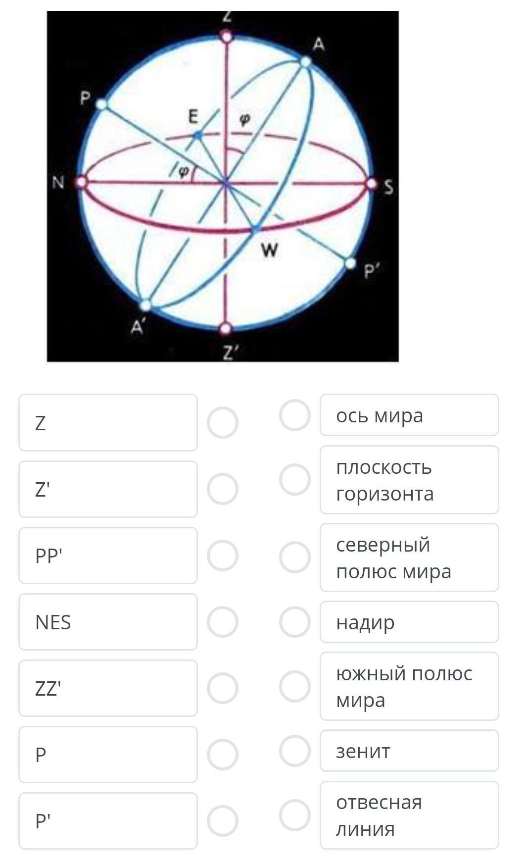 NES- плоскость горизонта
