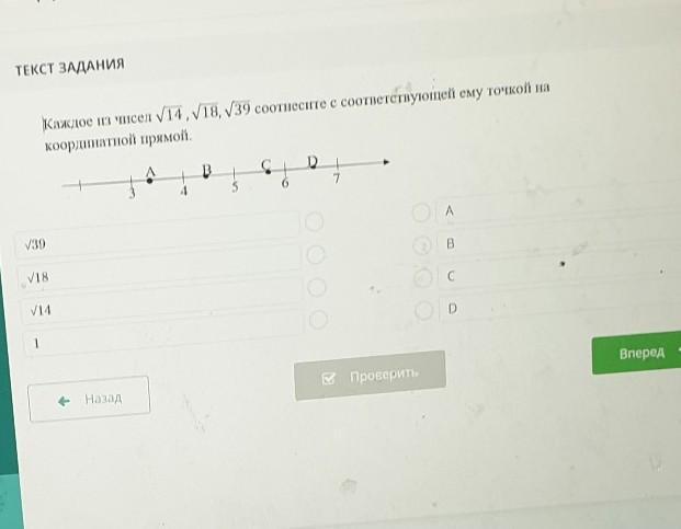 каждое из чисел 14 18 39 Соотнесите соответствующим ему точками на координатной прямой