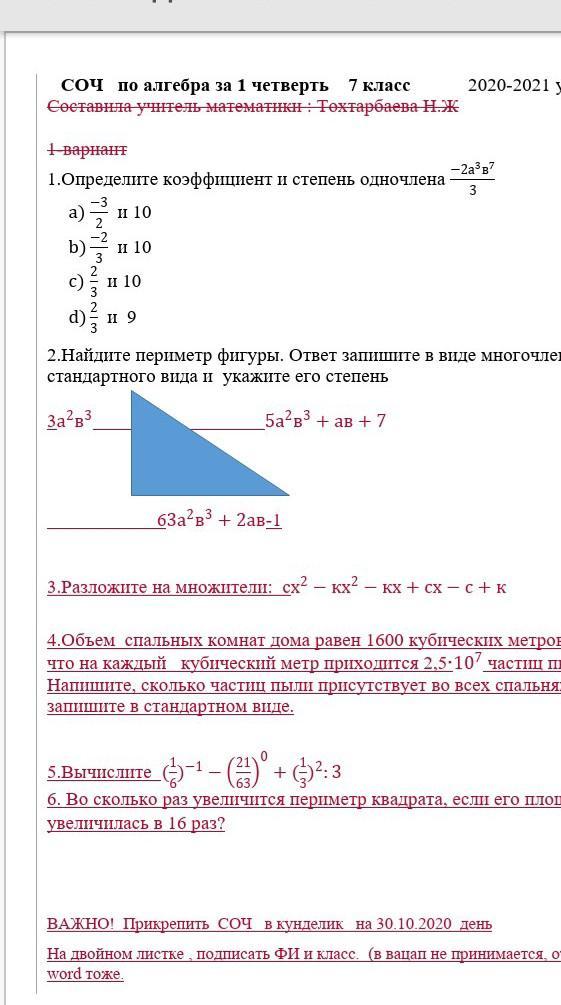 Найдите периметр фигуры. Ответ запишите в виде многочлена стандартного вида и укажите его степень