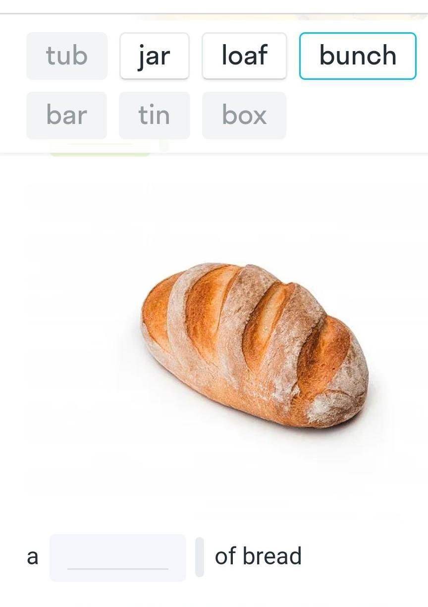 Правильный вариант - третий. К этой картинке вариант loaf подходит в отличии от остальных, т.к. loaf это значит буханка.