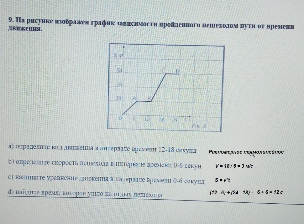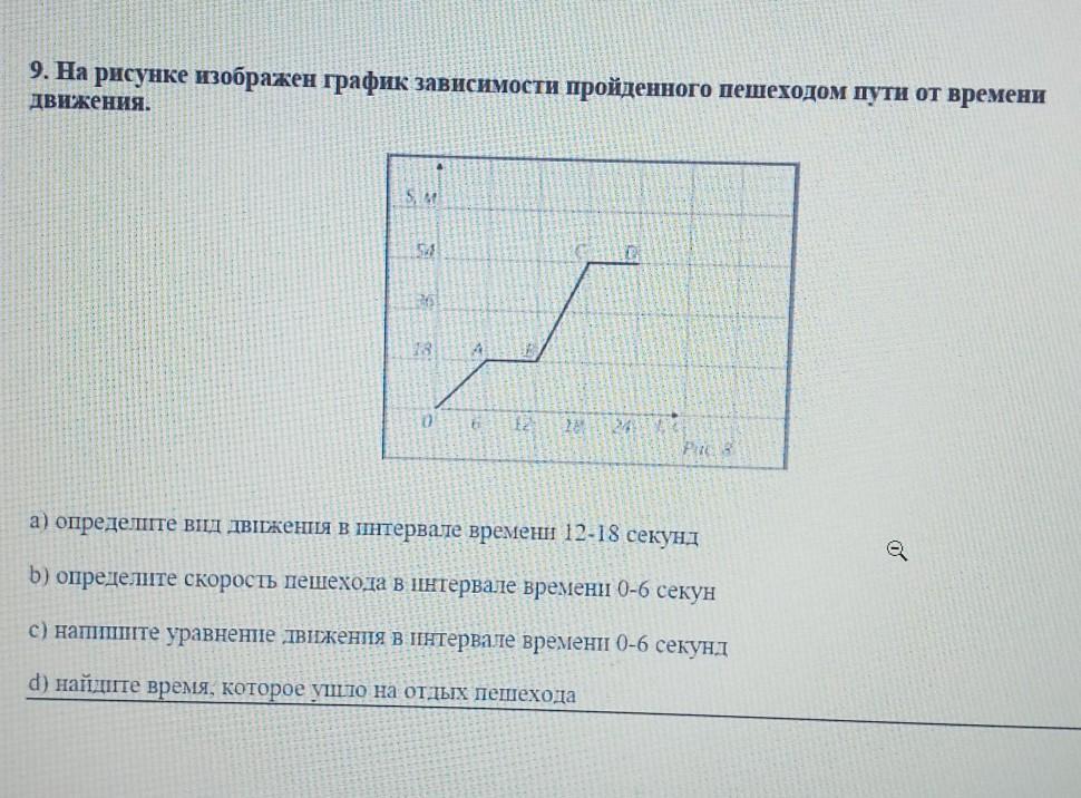 9. На рисунке изображен график зависимости пройденного пешеходом пути от времени